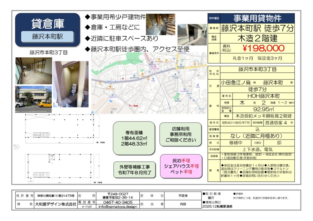 小田急江ノ島線 藤沢本町駅 徒歩7分にある事業用賃貸物件です。